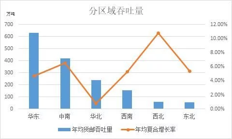 國家發(fā)展改革委民航局2017年印發(fā)《全國民用運(yùn)輸機(jī)場(chǎng)布局規(guī)劃》,根據(jù)優(yōu)化布局結(jié)構(gòu)、加密擴(kuò)能并重、服務(wù)國家戰(zhàn)略、綠色集約環(huán)保的原則,規(guī)劃布局完善華北、東北、華東、中南、西南、西北六大機(jī)場(chǎng)群。華北包括北京、天津、河北、山西、內(nèi)蒙古五地;東北包括遼寧、吉林、黑龍江三地;華東包括上海、江蘇、浙江、安徽、福建、江西、山東七地;中南包括河南、湖北、湖南、廣東、廣西、海南六地;西南包括重慶、四川、貴州、云南、西藏五地;西北包括陜西、甘肅、青海、寧夏、新疆五地。近五年來,貨郵吞吐量前60位機(jī)場(chǎng)的吞吐量之和保持在全國總量的98%以上,本文根據(jù)60大機(jī)場(chǎng)的貨郵吞吐量數(shù)據(jù)研究全國機(jī)場(chǎng)的貨運(yùn)發(fā)展情況。